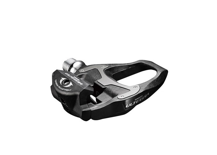 Shimano SPD-SL pedale. Telo od karbona pokriveno pločicom od izdržljivog nerđajućeg čelika, koja smanjuje savijanje i omogućava manje habanje pedale. Ektra-široka platforma obezbeđuje efikasniji prenos snage.