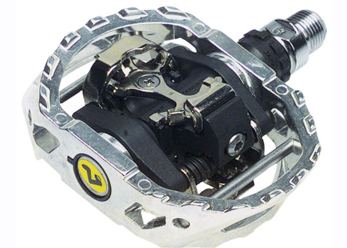 Shimano SPD PD-M545, pedale za agresivan stil vožnje i tehnički zahtevne terene. Zaštitni kavez povećava stabilnost, obezbeđuje veću površinu kontakta sa pedalom i štiti telo pedale od spoljnjih uticaja.