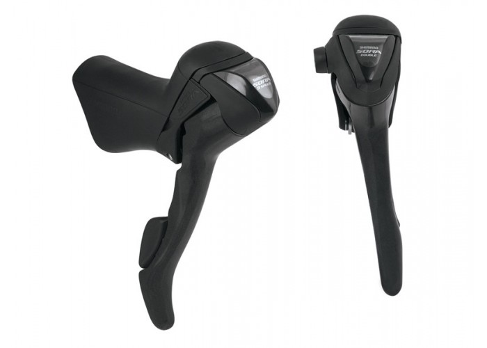 Shimano Sora ručice menjača / kočnica ( Dual Control Lever ), sa integrisanim optičkim prikazom trenutne brzine. Ergonomski dizajn obezbeđuje veću udobnost u vožnji, podešavanje dohvata omogućava prilagođavanje ručica vozačima sa manjim šakama.