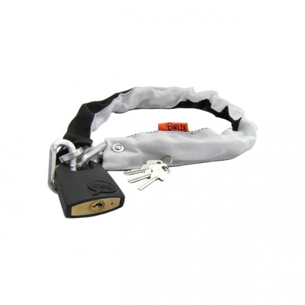 MATERIALS : Hardened Steel Chain and tough Nylon chain & padlock covers.