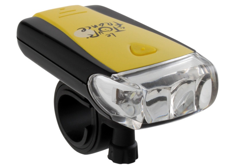 Prednjala lampa Tour de France sa tri led diode. 3 bele led diode sa plastičnim nosačem 2 funkcije (stabilna i treperava)